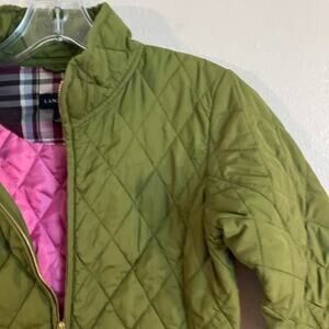 Green Lands' End quilted jacket with pink lining Youth