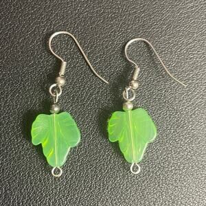 Green Leaf Earrings in Glass or Stone Silver tone Earwire 1.5" Light Dainty
