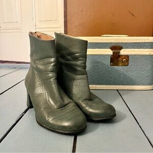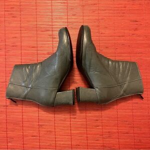 About Arianne classic Milo leather ankle boots with a block heel. This color is one of their first editions of this boot. Super soft leather and very comfortable. Minimal wear tear as seen in pictures, these are very well made shoes. Made in Spain EU 36/ US 6.