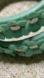 This elegant bracelet showcases a vibrant green leather band adorned with intricate floral cutouts and subtle metal studs. Its layered design adds a touch of texture and style, making it a perfect accessory for any casual or bohemian look.