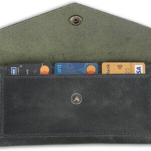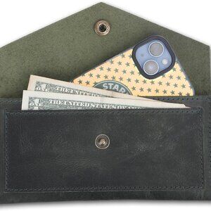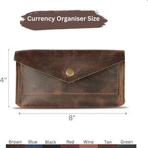 Features: Made from genuine full-grain leather, this stylish wallet features two spacious compartments—one for daily essentials and another for cash envelopes. The secure snap button closure keeps everything safe and adds a touch of sophistication. Slim and lightweight, it's perfect for busy days on the go, whether slipped into your bag or carried solo.