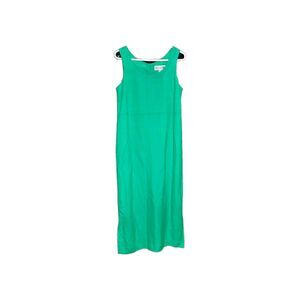Green Linen Blend Shift Maxi Dress 8, Sleeveless Scoop Neck, Cottagecore Garden