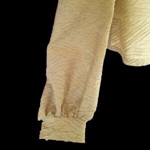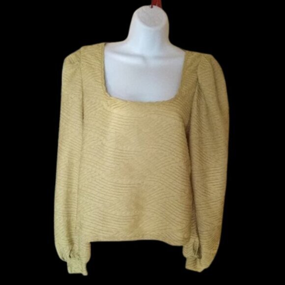 - textured fabric - stretchy - square neckline -bishop sleeve with puffy shoulders - in excellent condition