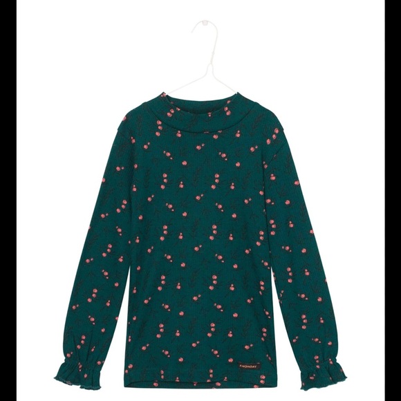 Green Long Sleeve Top with berry Pattern boutique brand A Monday In Copenhagen