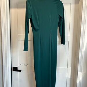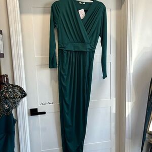This elegant teal dress features a flattering wrap design and long sleeves, perfect for any occasion. The rich color adds a touch of sophistication to your wardrobe.