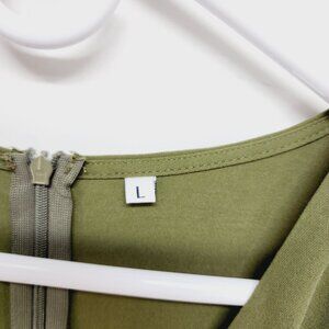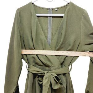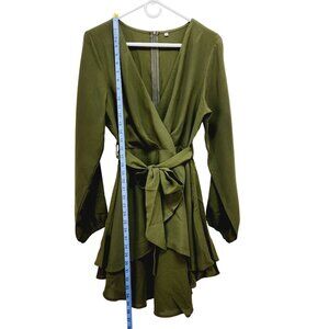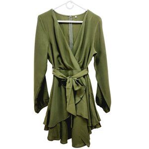 Green Long-Sleeve V-Neck Wrap Dress With Ruffle Hem & Tie Waist - Size L