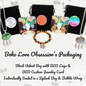 Each piece comes packaged in its own black velvet gift bag sealed with the official Boho Love Obsession sticker & custom tags. It will be bubble wrapped & shipped in a small box.