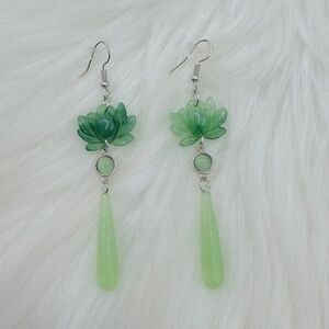 Green Lotus Statement Earrings