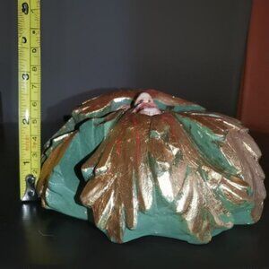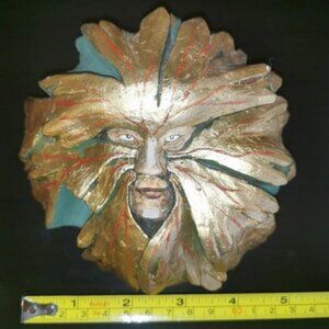 Green Man Face Wall Plaque Painted Plaster w/ Gold & Green Detailing 5"