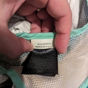 Keywords/aesthetic: waterproof, water resistant, wind proof, wind resistant, outdoor, hiking, pit zips for ventilation, lightweight, drawcords for waist and sleeve/arm cuff adjustments