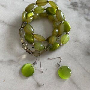 Green Medallion 19" Necklace with Matching Bracelet and Earrings