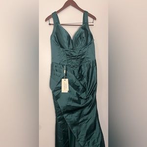 Green Mermaid Slit V-Neck Evening Gown (Size 12)
