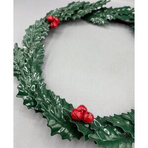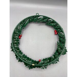 Green Metal Holly Leaf Wreath With Red Bells Christmas Decoration 10"
