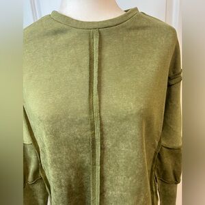 Green mineral wash exposed seamed high Lowe raw edge top.