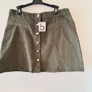 This green mini skirt features a classic A-line silhouette, perfect for both casual outings and work settings. Its simple design and versatile color make it a wardrobe staple for any occasion.
