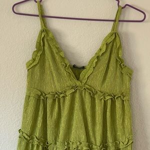 V neck green dress from Wild Fable in size small! ❇️ Tiered ruffle design and very cute fabric. Worn only a couple of times - in great condition! With adjustable straps.