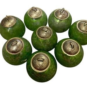 Green Mini Kugel Glass Christmas Ornament 9 lot 1.25-2"