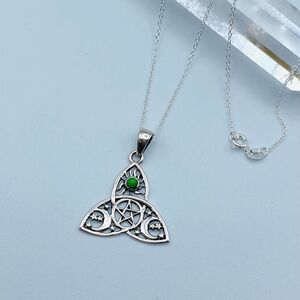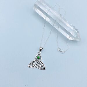 Green Mohave Turquoise Celtic Sun Moon & Star Sterling Silver Necklace