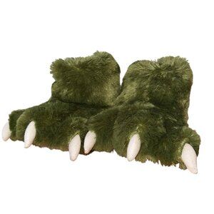 These plush green monster claw slippers are designed for children and provide a cozy, playful experience. The fuzzy exterior offers warmth, while the non-slip soles ensure stability on various surfaces. Ideal for costume parties or comfortable lounging at home, they add a touch of whimsy to any footwear collection.