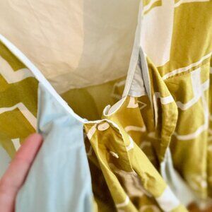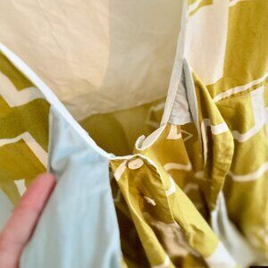 Bow in the back with green contrast. Two buttons clousure in the back.