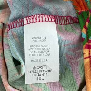 Green Multicolor Tropical Print Tie Front Flutter Sleeve Cropped Top Plus 1X NWT