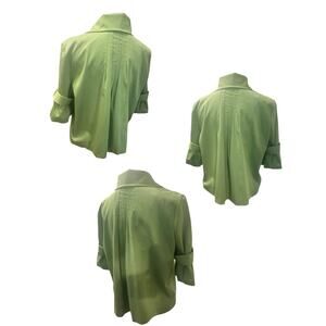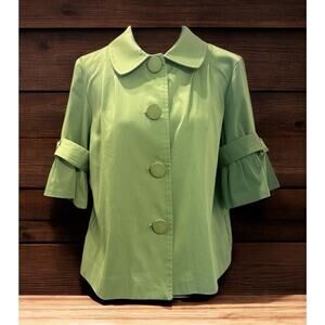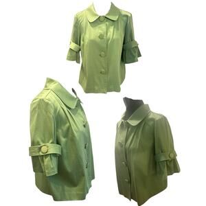 Green ND New Directions Jacket Short Ruffled Sleeve Big Buttons Womens Sz Med