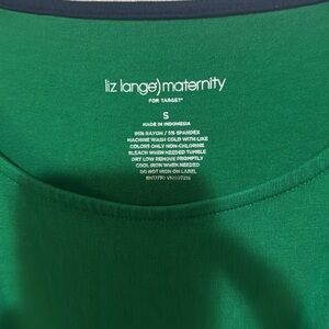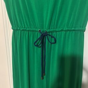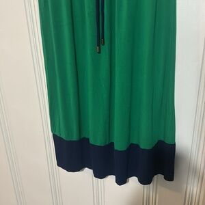 Green & Navy Color Block Maternity Dress w/ Elastic & Drawstring Waist - Small