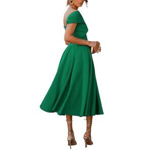 Cocktail Party Dress, Holiday Dress, Christmas Gifts, Wedding Guest Dress, Off The Shoulder A-Line Midi Dress, Flare Hem, Elegant Style
