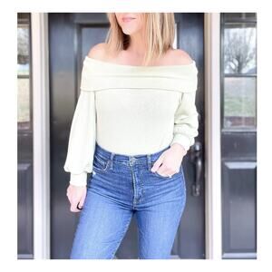 Your new go-to top features a feminine off the shoulder silhouette. This is a timeless style to take you from season to season.