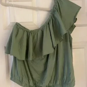 Elevate your style with this chic green off-shoulder ruffle top. Perfect for any occasion, this top offers a blend of comfort and elegance.