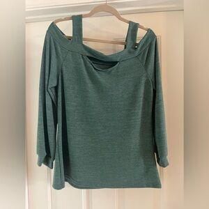 Stylish green off-shoulder top with long sleeves. Perfect for casual outings.