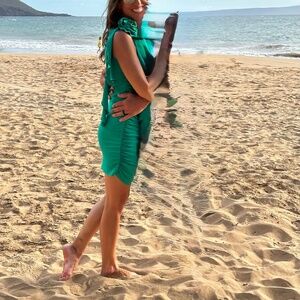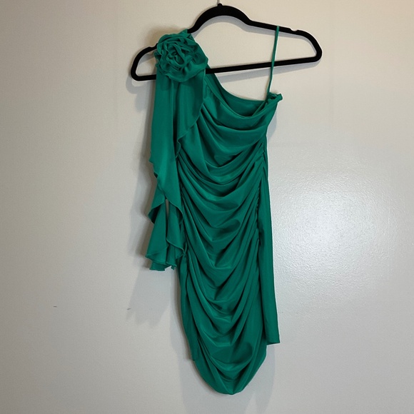 Women's 3D Rose One Shoulder Sleeveless Ruffle Trim Ruched Party Cocktail Bodycon Mini Dress. Worn once for a beach wedding in Hawaii.