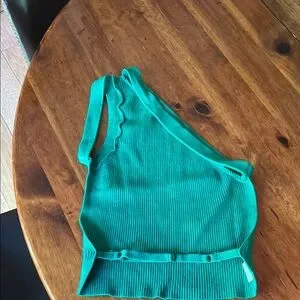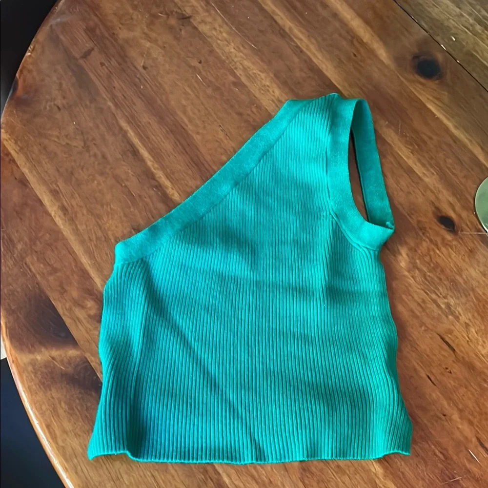 Elevate your style with this chic green one-shoulder ribbed top. Perfect for any occasion, this top offers a trendy and comfortable fit.