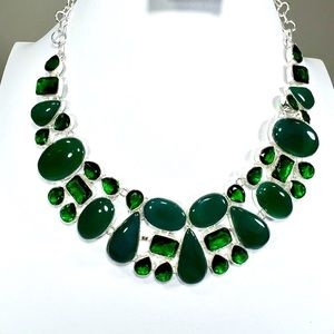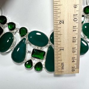 925 Sterling Silver overlay (silver plated) Large Necklace Green onyx gemstones & synthetic green quartz stones Looking for matching pieces? Check out my other listings before purchasing so you can bundle the items to pay one shipping fee Search tags: 925 overlay, 925 plated necklace, gemstone gift, anniversary gift, gemstone, large gemstone necklace, big gemstone necklace, gemstone, gemstone jewelry, jewelry set, jewelry gift, gemstones, gemstone necklace, big, large, 925, sterling silver, 925 sterling, 925 necklace, sterling silver necklace, silver necklace