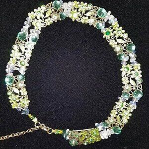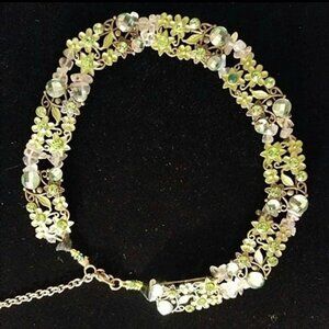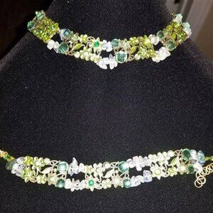 This exquisite necklace set features a stunning combination of green and yellow opalite tones, perfect for adding a touch of elegance to any outfit. The intricate floral design showcases the beauty of nature, making it a must-have accessory for any jewellery collection.