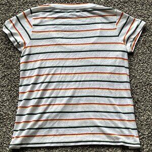 Green, Orange, Red Striped Medium Madewell Top, 100% Cotton Blouse