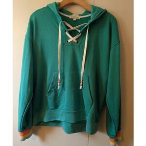 Cozy fabric, impeccable design - Meet the sweatshirt that you'll never want to take off. This hoodie is crafted from a soft blend of 74% Modal, 26% Polyester with a lace-up drawcord and playful rainbow accents for a cozy, stylish look. Perfect for layering or wearing solo
