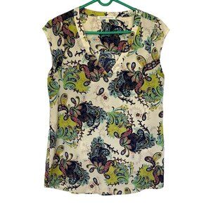 Daniel Rainn Paisley Print Flowy V Neck Cap Sleeve Blouse Size Womens X-Small