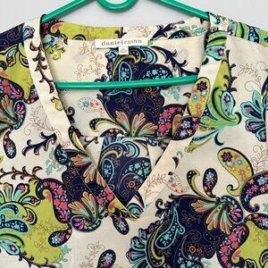 Daniel Rainn Paisley Print Flowy V Neck Cap Sleeve Blouse Size Womens X-Small