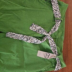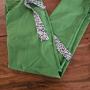 Stylish green pants. Features a polka dot tie at the waist. Perfect for casual wear.