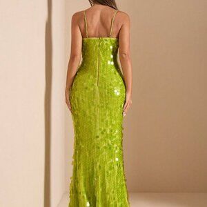 Green Party Women's Deep V-Neck Hollow Lace-Up Slim Fit Luxury Sequin Dress