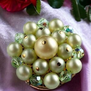 Green Pastel Beaded Brooch, Classic Vintage Brooch