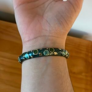 Beautifully detailed green bracelet with a hinge so it’s easy to take on and off.