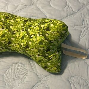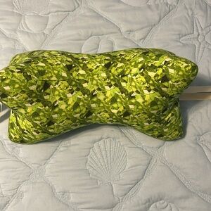 Vibrant green pillow with a unique pattern. New pillow. Can be used for neck btwn knees, travel.