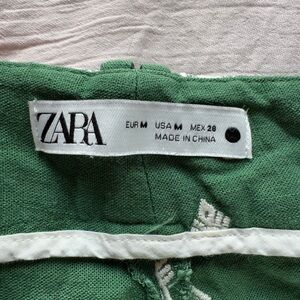 Stylish green pants with a unique white pattern. Comfortable wide-leg design. Perfect for casual outings.