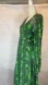 Elevate your style with the Green Patterned Women's Dress. This elegant piece features a vibrant green design, perfect for any occasion. Enjoy the comfort and chic look that this dress offers. Front 2 sides and Back design with beautiful Rhinestones, Surplice V neck, waistline the Strap is moveable , you can make it tighter Or Looser, sleeves Hem is Elasticity, Approx LENGTH 47” , Pet to Pet 20” , Sleeves , shoulder to Hem 27”, armpit to Hem 20.1/2” .