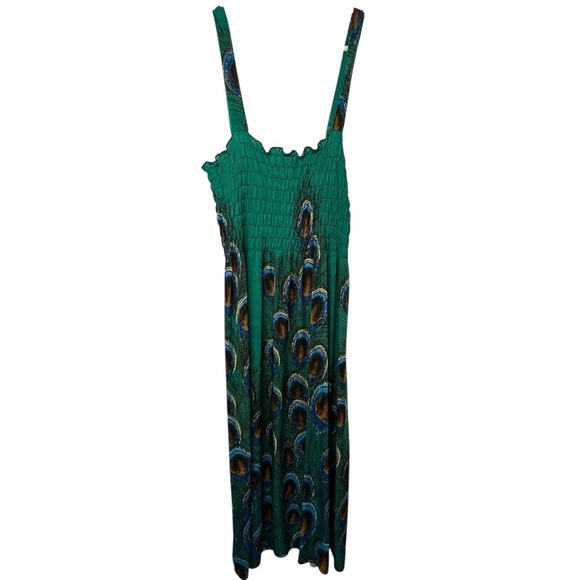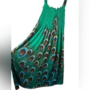 Green Peacock Print Tank Dress Beach Coverup. Size XL. Elastic bust.