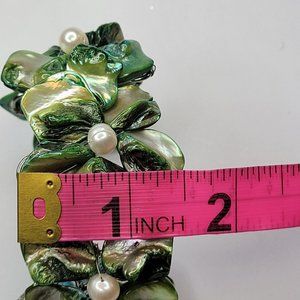 Green Pearl Adjustable Cuff Bangle Bracelet- NEW