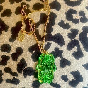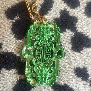 Elegant green pendant necklace with a gold chain. Perfect for adding a pop of color. Important: Clasp is a little still.