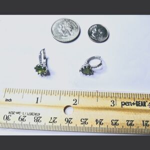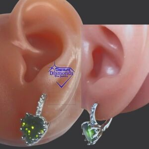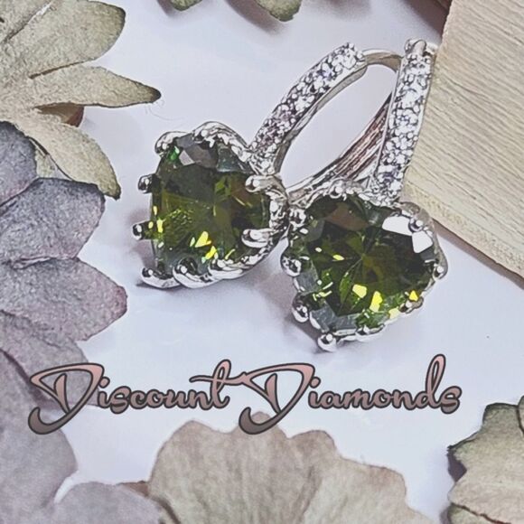 Green Peridot Dangle Earrings & White Baguette Diamonds on 925 Silver